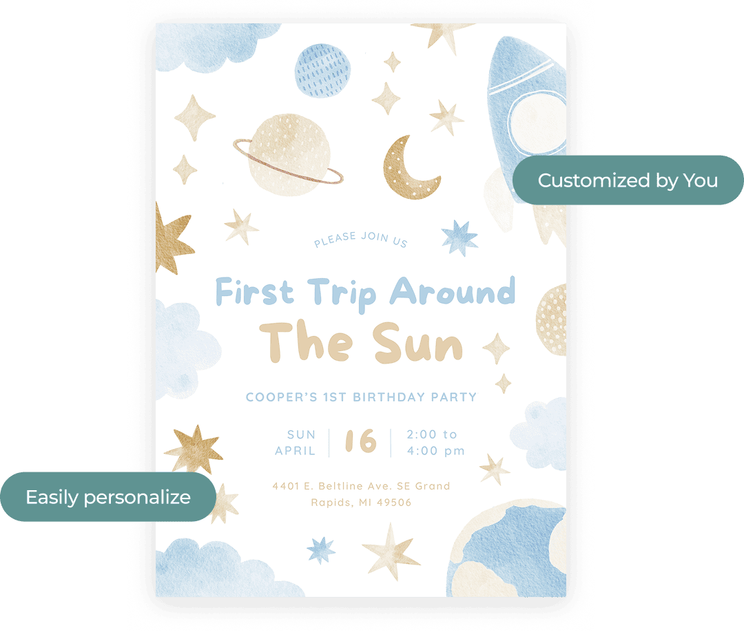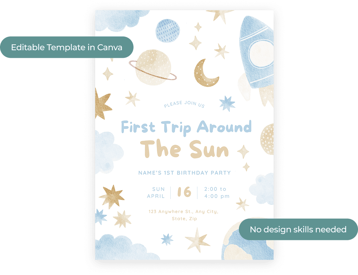 Easily personalize your invitation with your child’s details right in Canva — no design skills needed.
