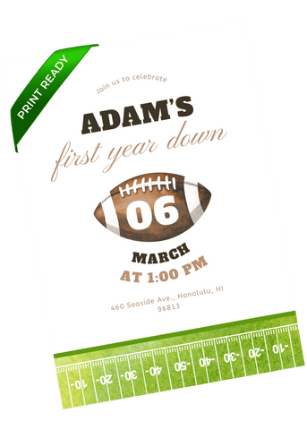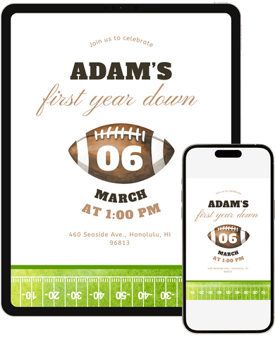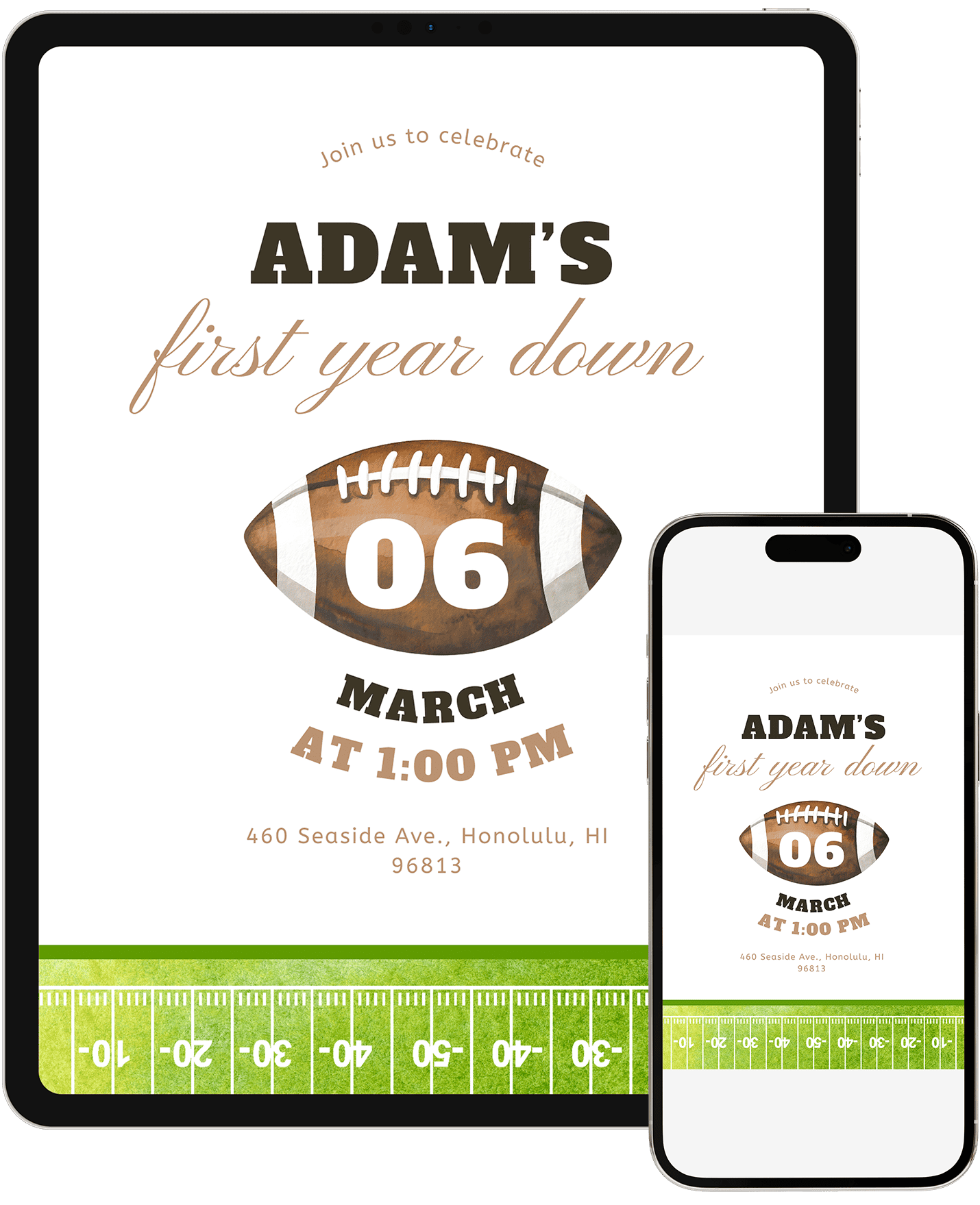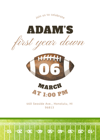 A crisp and modern football invitation featuring a football graphic and clean field markings. Perfect for a birthday that celebrates all things sports. Edit in Canva and share a layout that feels polished and easy to read.
