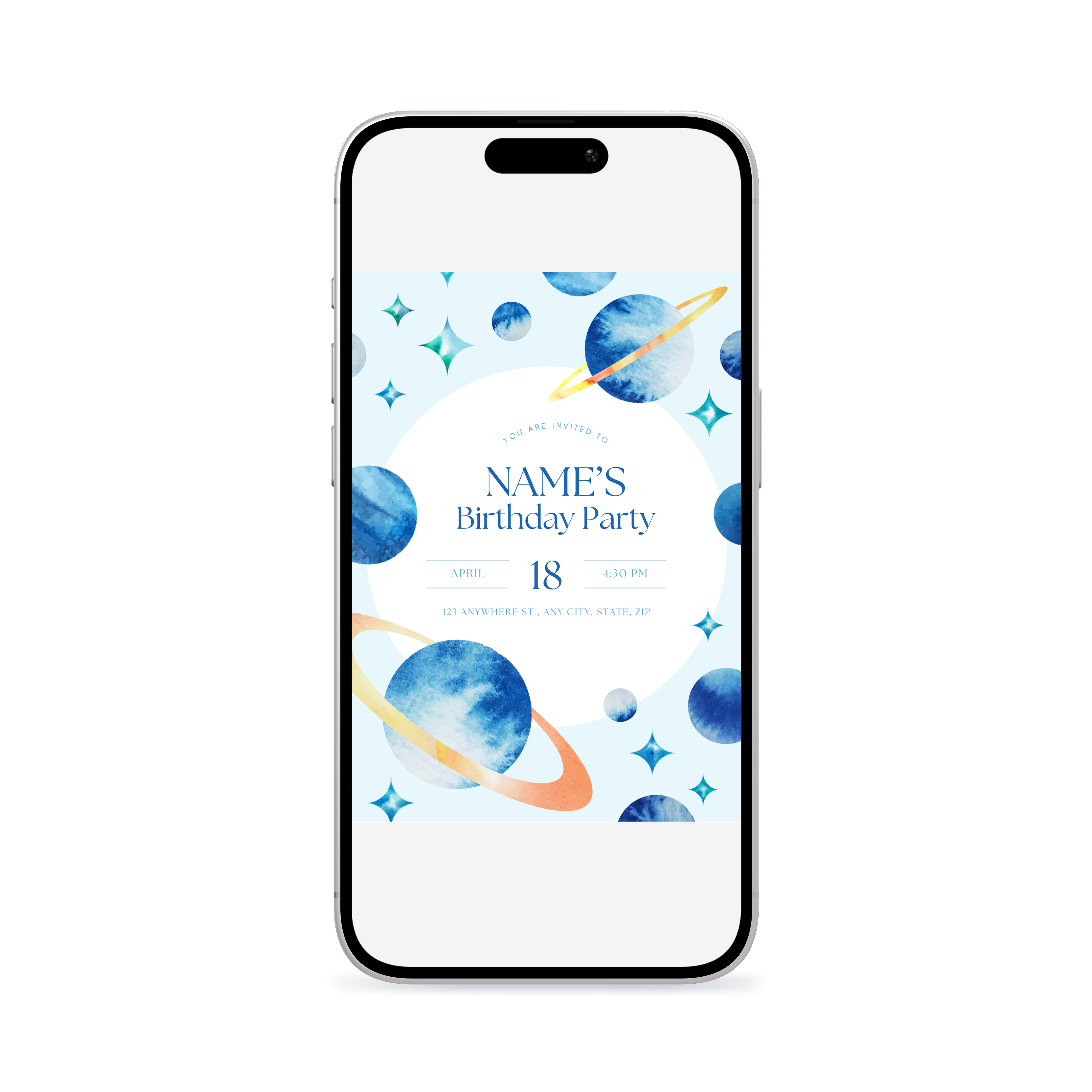 Sleek, modern first trip around the sun theme 1st birthday invitation template. Clean design meets contemporary style in this Canva-ready template. Perfect for parents who love minimalist aesthetics with maximum impact.