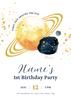 Sleek, modern first trip around the sun theme 1st birthday invitation template. Clean design meets contemporary style in this Canva-ready template. Perfect for parents who love minimalist aesthetics with maximum impact.