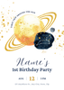 Sleek, modern first trip around the sun theme 1st birthday invitation template. Clean design meets contemporary style in this Canva-ready template. Perfect for parents who love minimalist aesthetics with maximum impact.