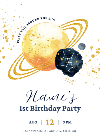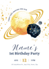 Sleek, modern first trip around the sun theme 1st birthday invitation template. Clean design meets contemporary style in this Canva-ready template. Perfect for parents who love minimalist aesthetics with maximum impact.