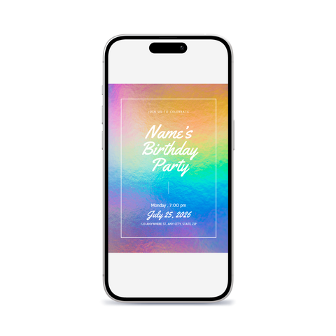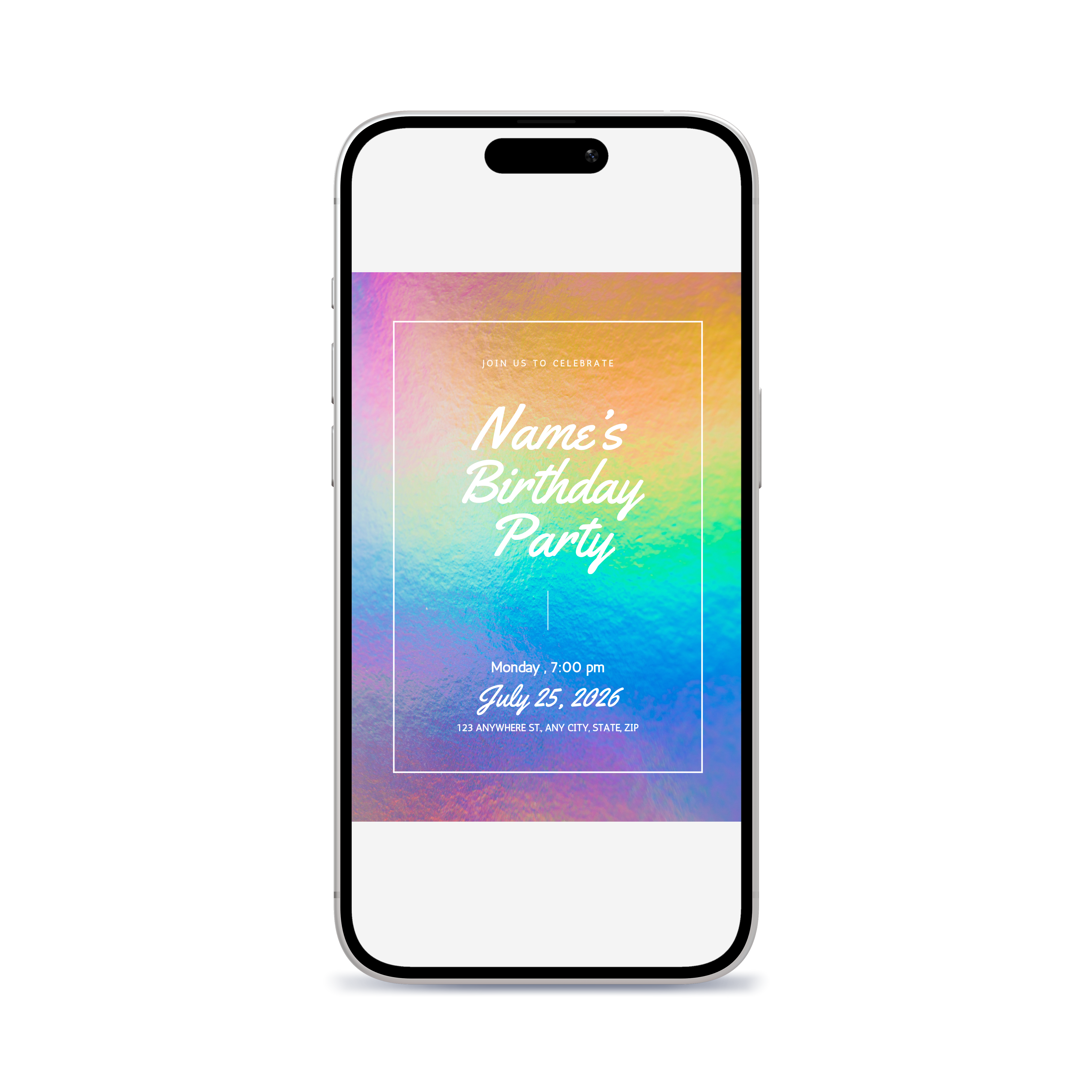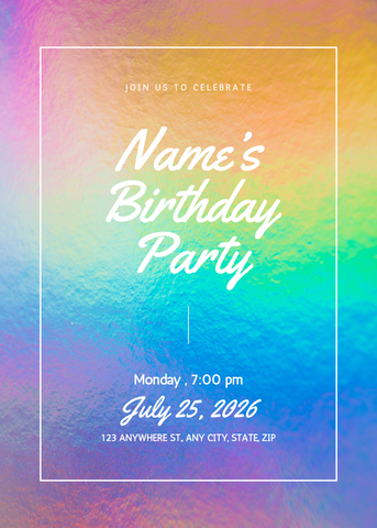 Sleek, modern rainbow classic birthday invitation template. Clean design meets contemporary style in this Canva-ready template. Perfect for parents who love minimalist aesthetics with maximum impact.