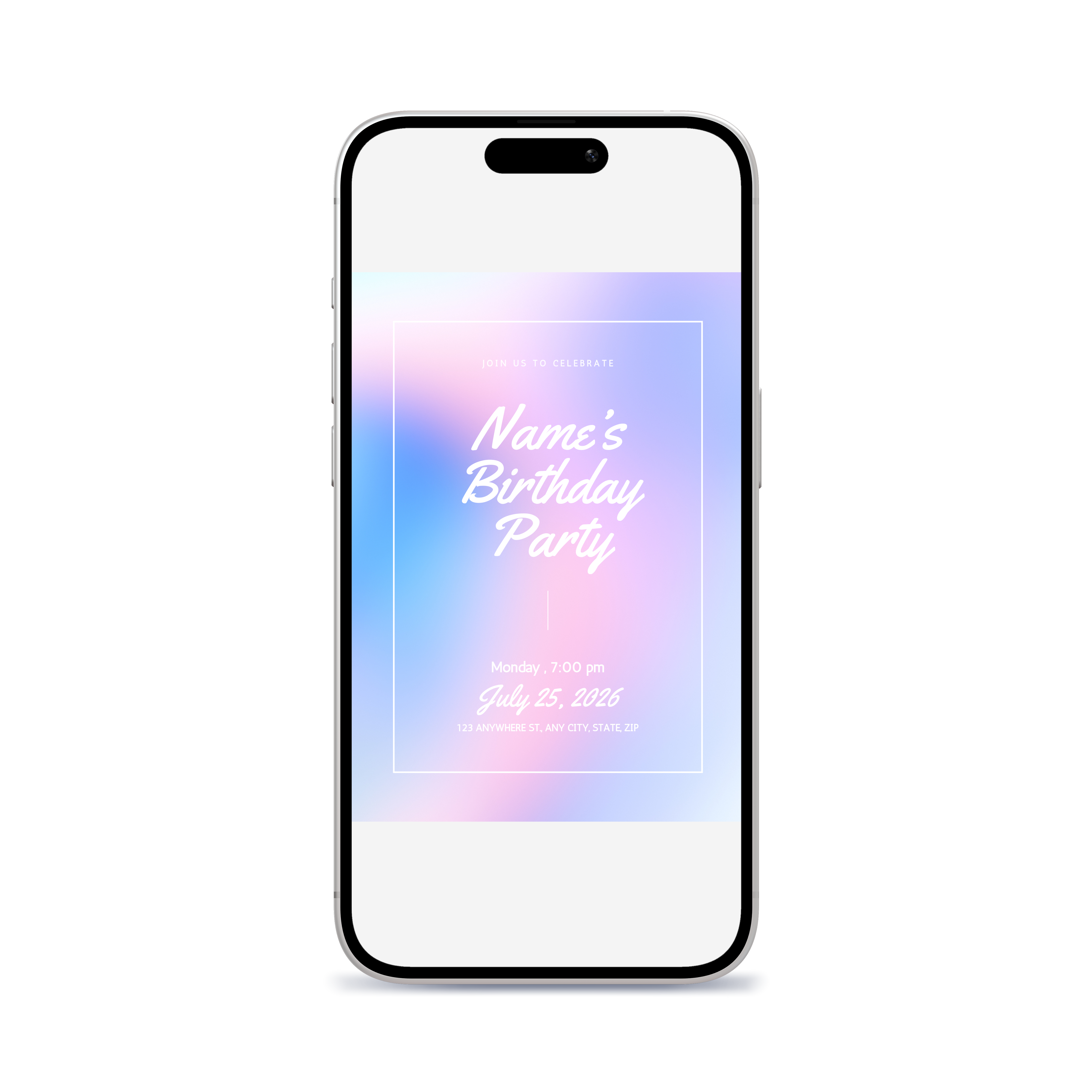 Sleek, modern rainbow classic birthday invitation template. Clean design meets contemporary style in this Canva-ready template. Perfect for parents who love minimalist aesthetics with maximum impact.