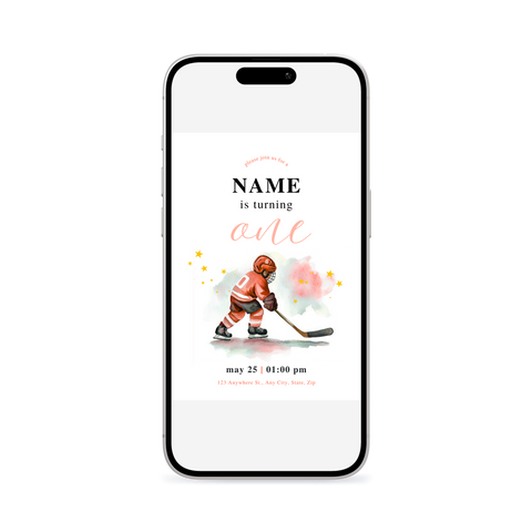 Sleek, modern hockey theme 1st - 5th birthday invitation template. Clean design meets contemporary style in this Canva-ready template. Perfect for parents who love minimalist aesthetics with maximum impact.