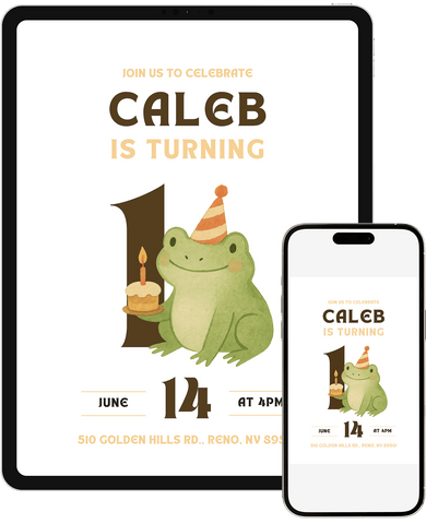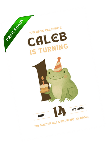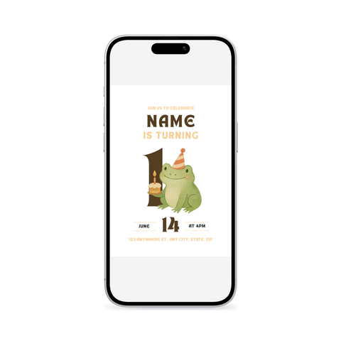 A soft green frog birthday invitation with simple illustrations and calm, minimal colors. Great for parents planning a sweet, nature-inspired celebration. Customize in Canva and share an inviting design that feels fresh and cheerful.