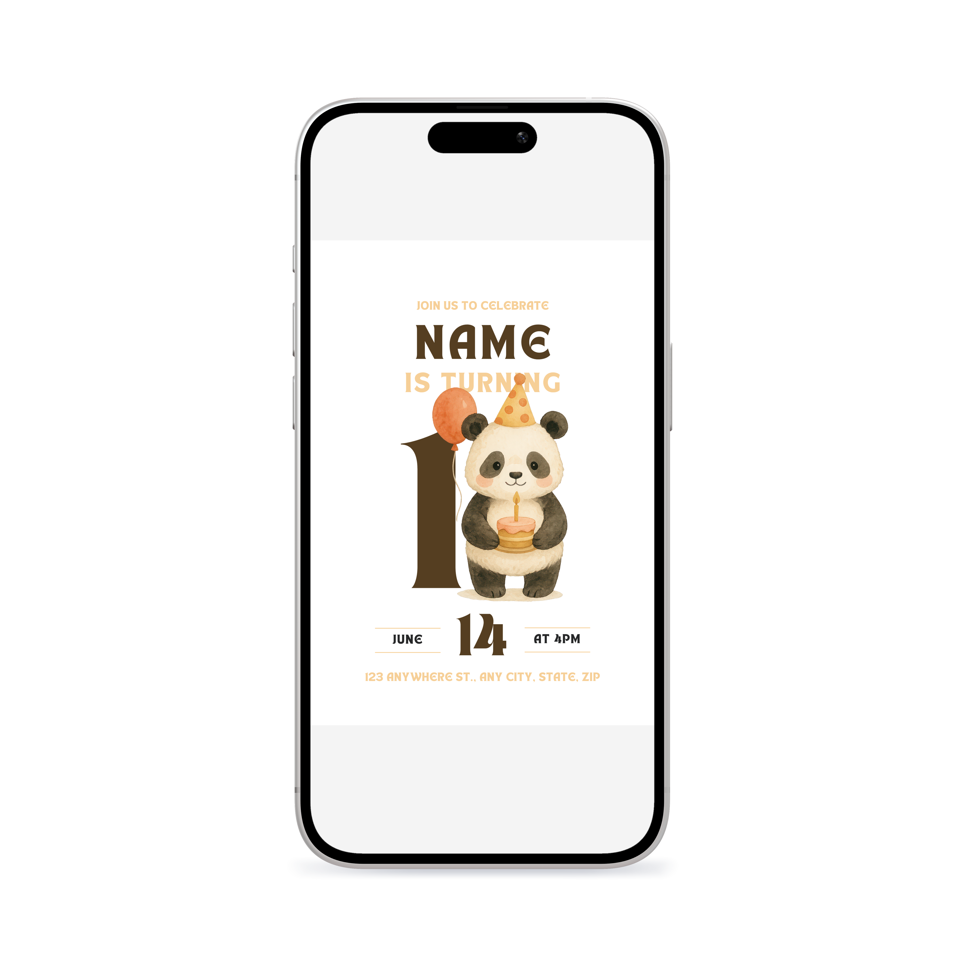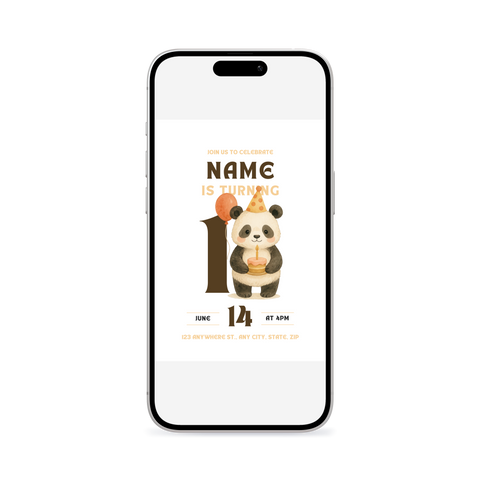 A soft panda birthday invitation with gentle neutral tones and clean design. Ideal for parents who prefer a relaxed, modern theme with a touch of character. Customize in Canva and send an easy, charming invite for a memorable celebration.