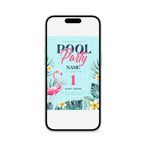 Sleek, modern pool party theme 1st - 5th birthday invitation template. Clean design meets contemporary style in this Canva-ready template. Perfect for parents who love minimalist aesthetics with maximum impact.