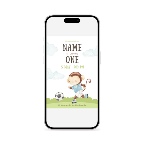 Sleek, modern soccer theme 1st - 5th birthday invitation template. Clean design meets contemporary style in this Canva-ready template. Perfect for parents who love minimalist aesthetics with maximum impact.