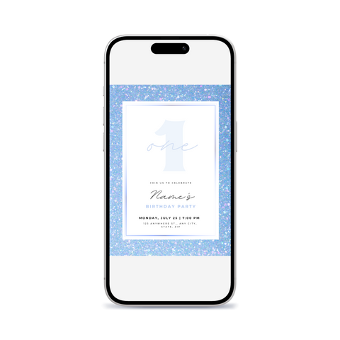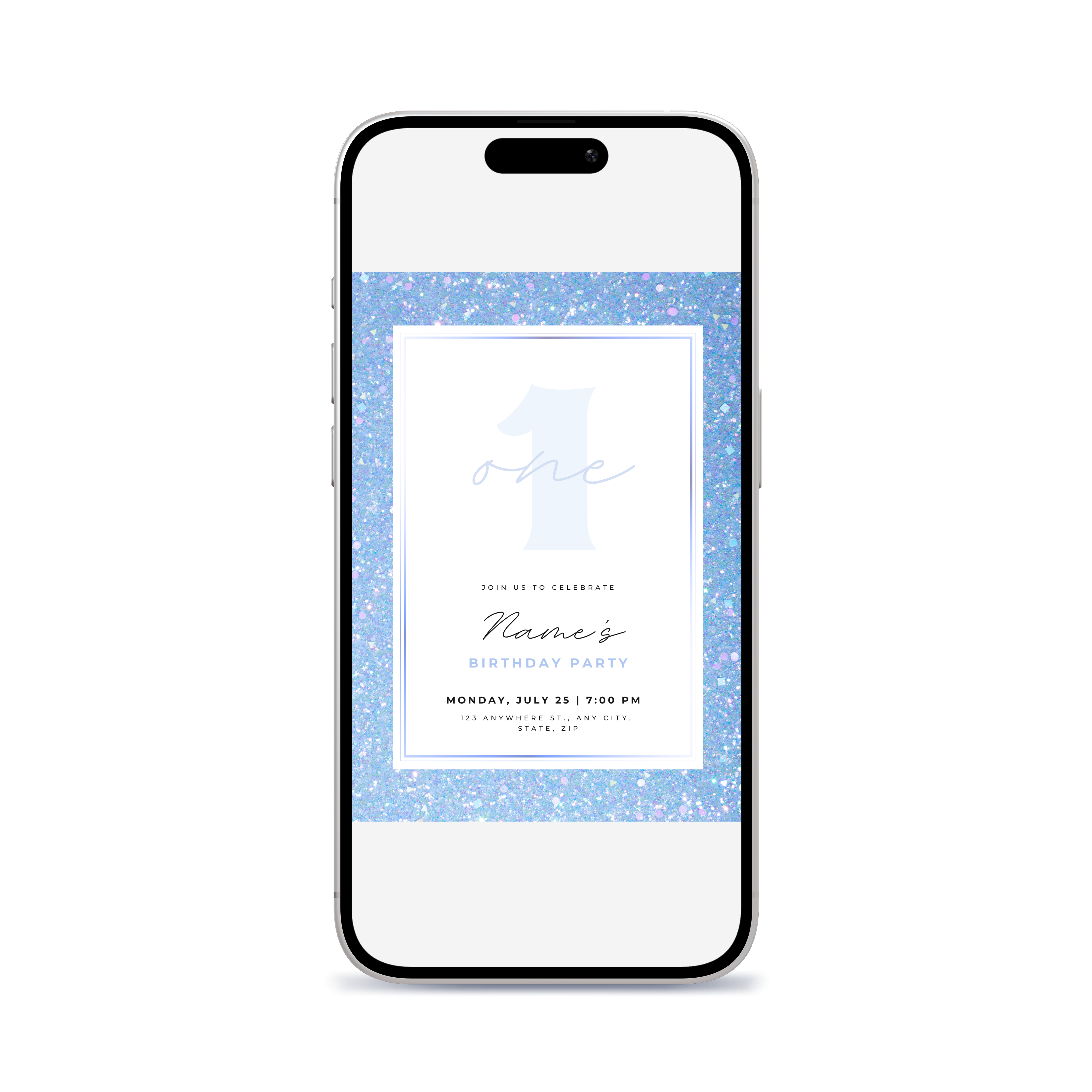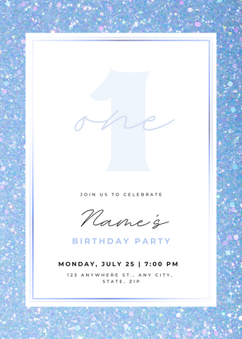 Sleek, modern glitter classic 1st - 5th birthday invitation template. Clean design meets contemporary style in this Canva-ready template. Perfect for parents who love minimalist aesthetics with maximum impact.