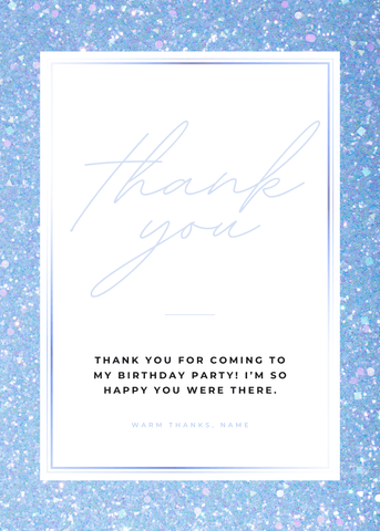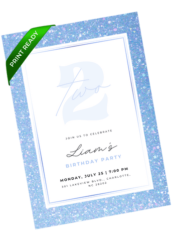 A cool-toned glitter invitation with a clean frame and subtle shimmer throughout. Great for parents looking for a polished design with just a touch of sparkle. Edit in Canva and share a stylish birthday invite with a crisp, modern feel.