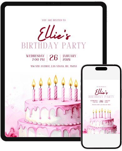 Sleek, modern cake classic 1st birthday invitation template. Clean design meets contemporary style in this Canva-ready template. Perfect for parents who love minimalist aesthetics with maximum impact.