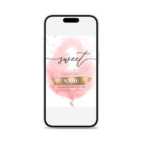 Sleek, modern cotton candy theme 1st - 5th birthday invitation template. Clean design meets contemporary style in this Canva-ready template. Perfect for parents who love minimalist aesthetics with maximum impact.