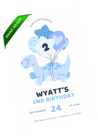 A cheerful blue dinosaur birthday invitation that brings a friendly dino character and balloon accents together in a clean, modern layout. Great for little ones who love dinosaurs and playful themes. Customize instantly in Canva and share a bright, happy invite that sets the tone for a fun celebration.