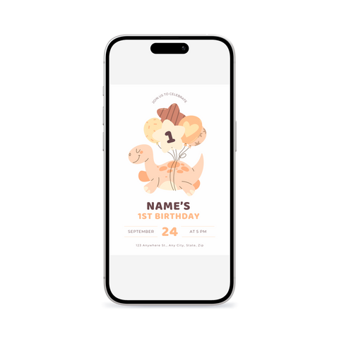 Sleek, modern dinosaur, balloons theme 1st - 5th birthday invitation template. Clean design meets contemporary style in this Canva-ready template. Perfect for parents who love minimalist aesthetics with maximum impact.