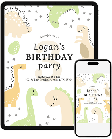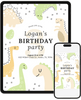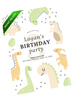 A colorful dinosaur birthday invitation in fresh green tones with friendly dino illustrations and charming patterns. A great choice for kids who enjoy nature and adventure themes. Personalize in Canva and share a modern, energetic invite.
