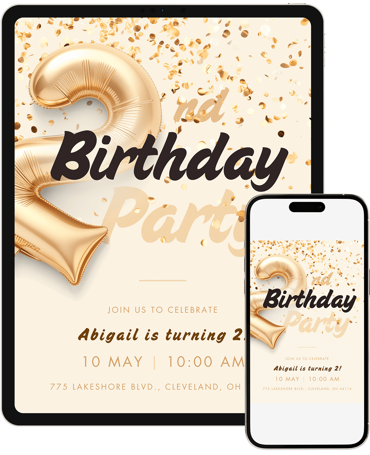 A festive gold balloon birthday invitation with warm tones and celebratory accents. Ideal for parents planning a fun, upbeat party with a touch of shine. Edit quickly in Canva and share an inviting design that feels joyful and modern.