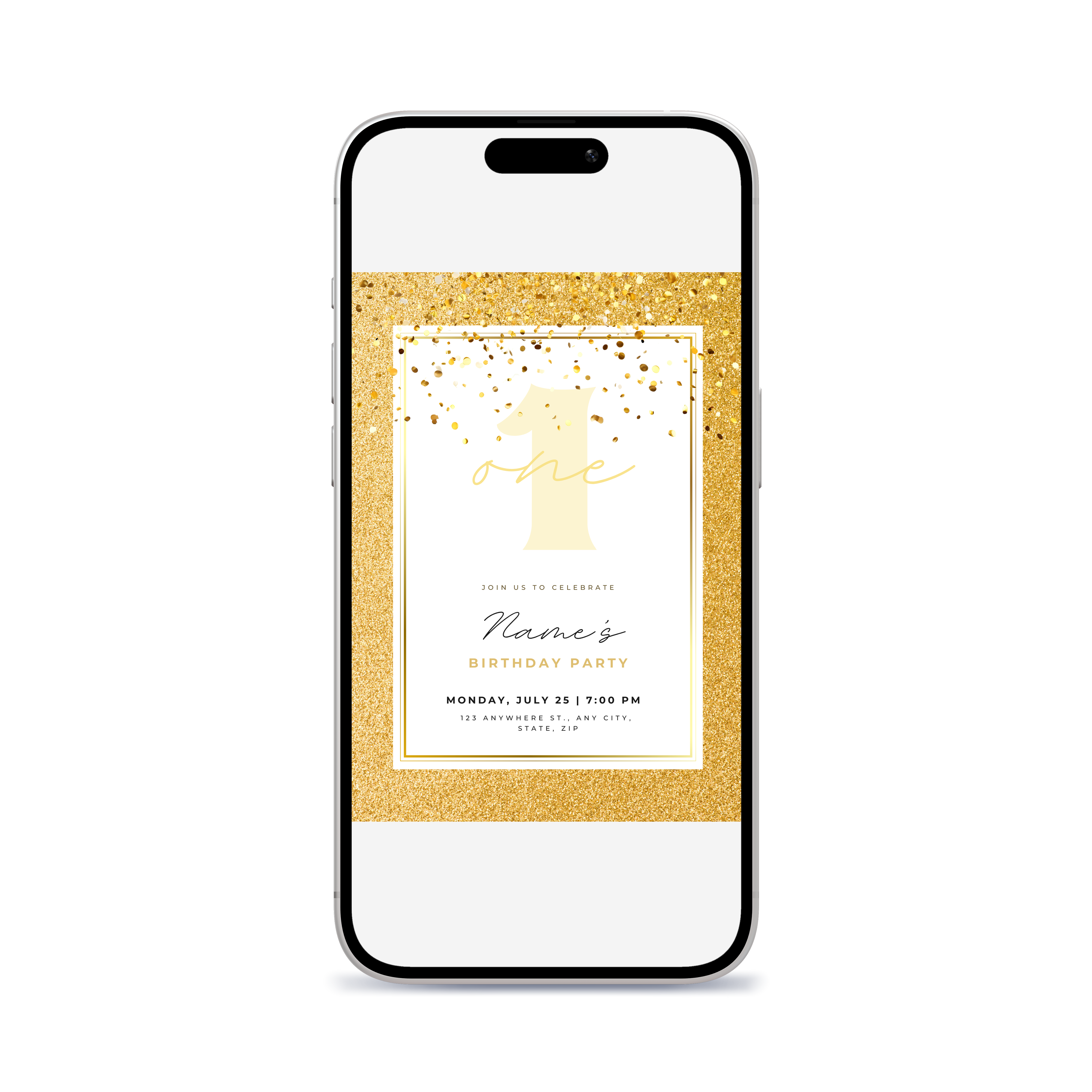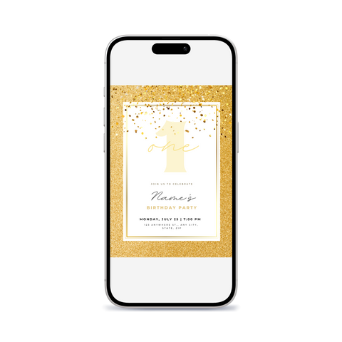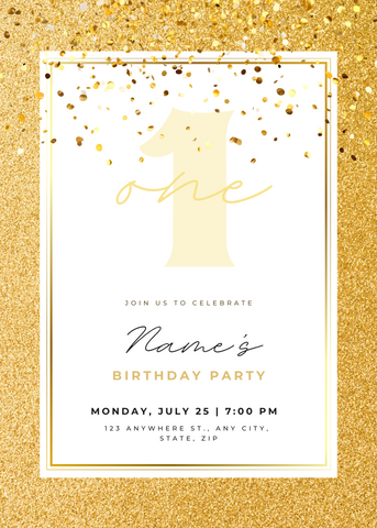 Sleek, modern glitter classic 1st - 5th birthday invitation template. Clean design meets contemporary style in this Canva-ready template. Perfect for parents who love minimalist aesthetics with maximum impact.