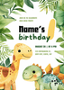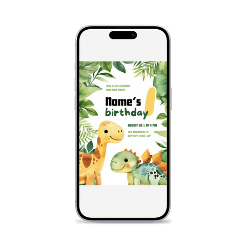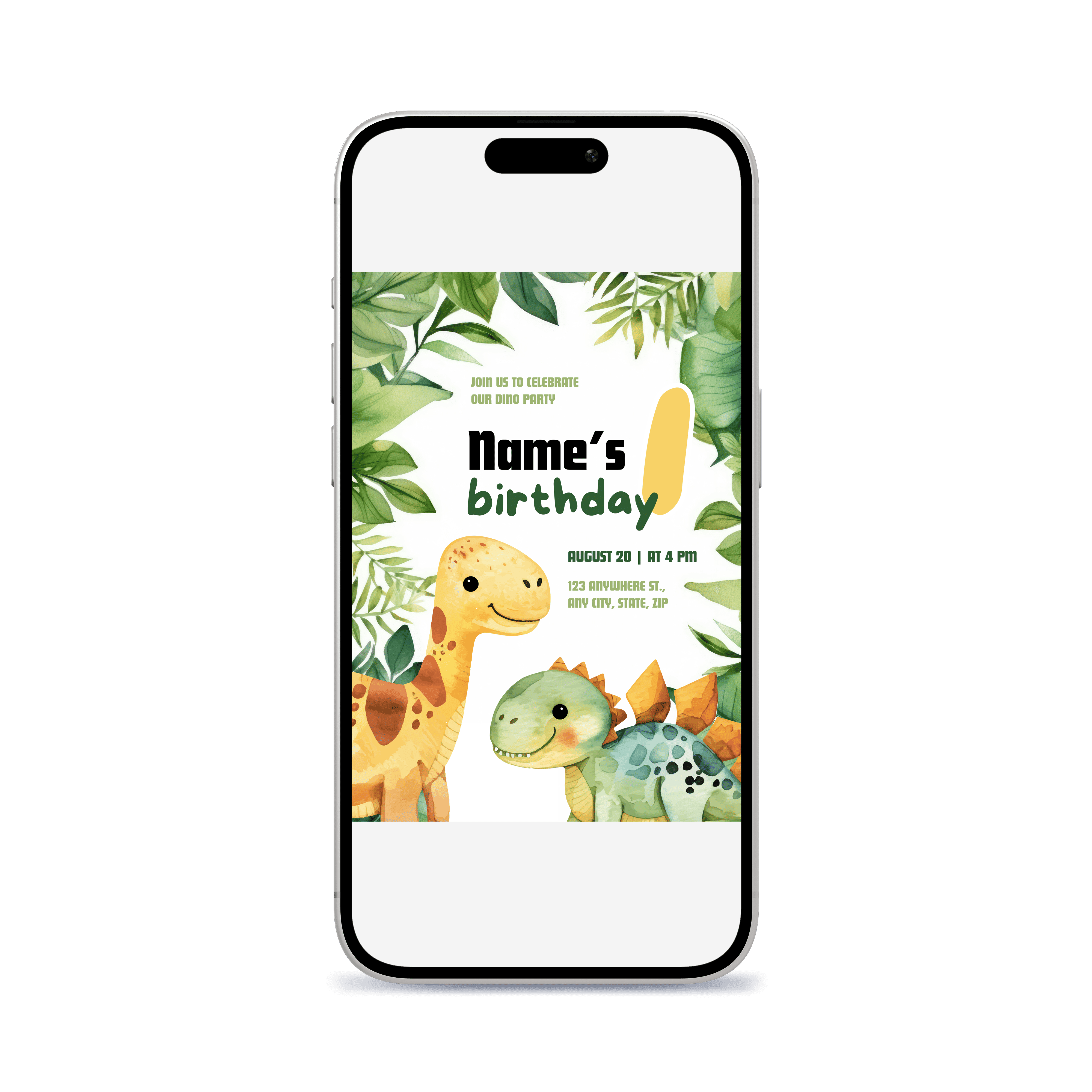 Sleek, modern dinosaur theme 1st - 5th birthday invitation template. Clean design meets contemporary style in this Canva-ready template. Perfect for parents who love minimalist aesthetics with maximum impact.