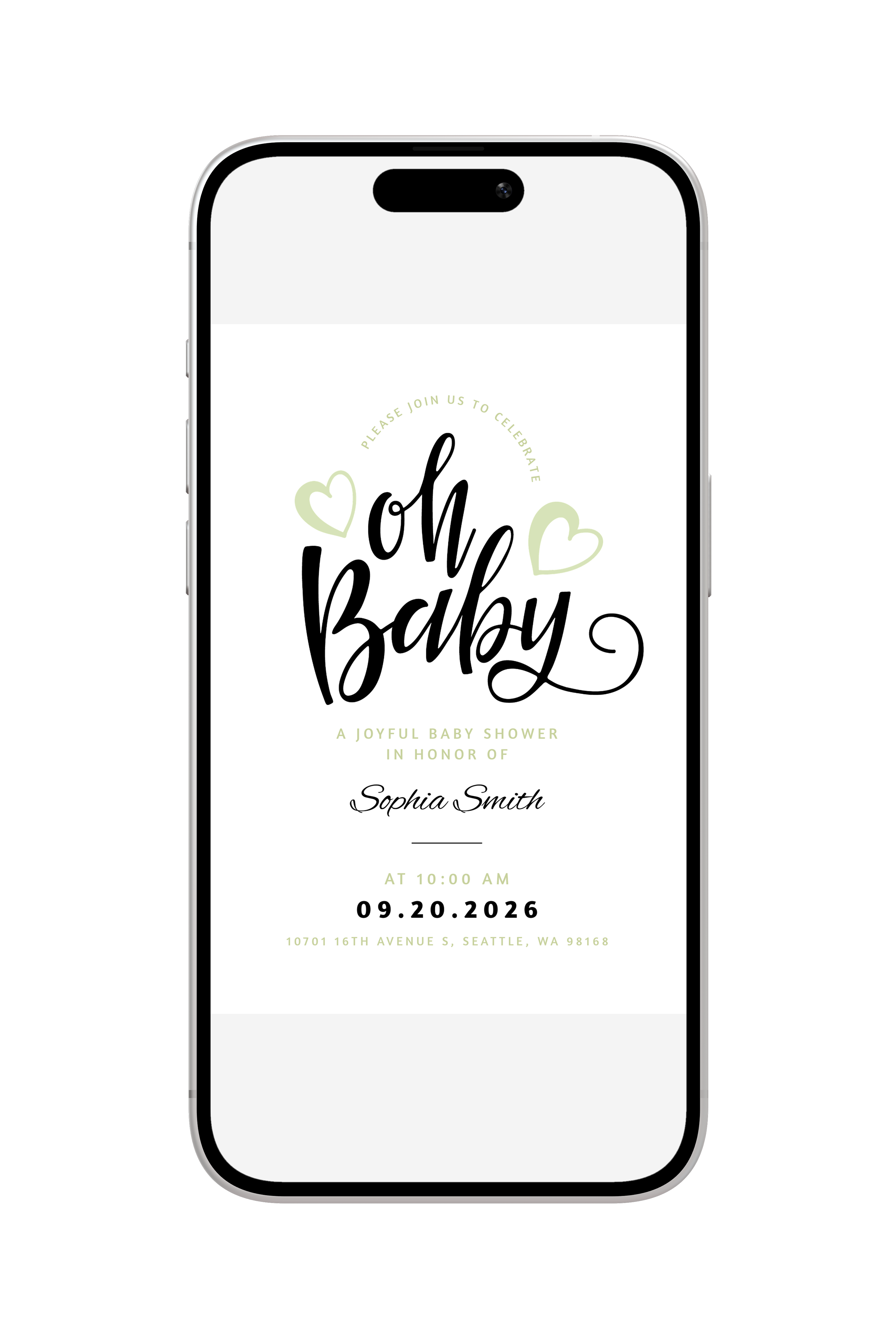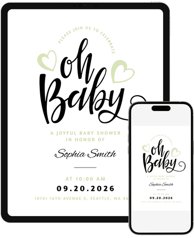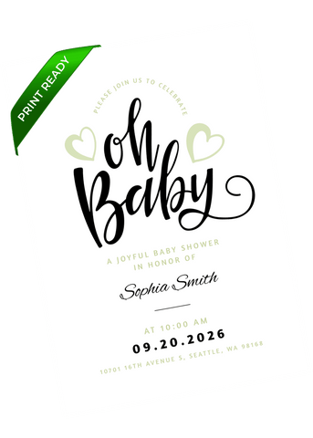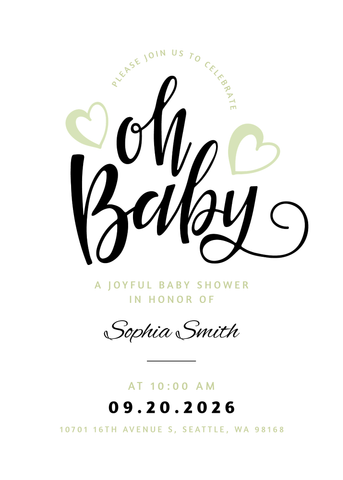 Fresh and modern - Love Notes Green brings a nature-inspired twist to the minimal heart invitation. Soft sage green tones make it perfect for a gender-neutral or garden-themed baby shower. Edit in Canva today.