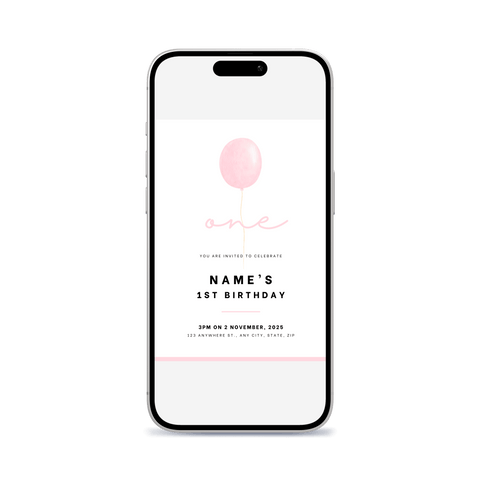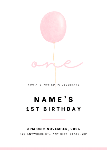 One Balloon Birthday Invitation - Pink