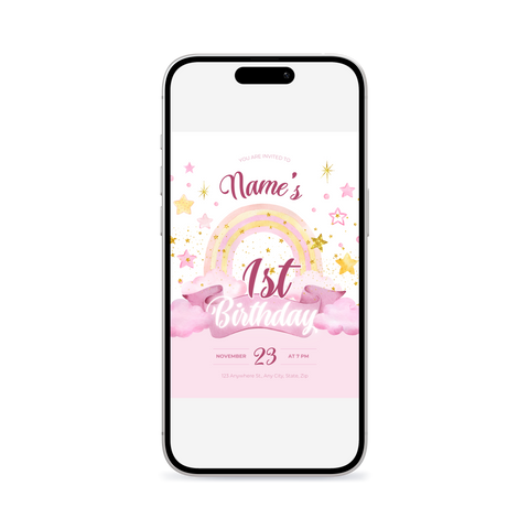Sleek, modern rainbow theme 1st - 5th birthday invitation template. Clean design meets contemporary style in this Canva-ready template. Perfect for parents who love minimalist aesthetics with maximum impact.