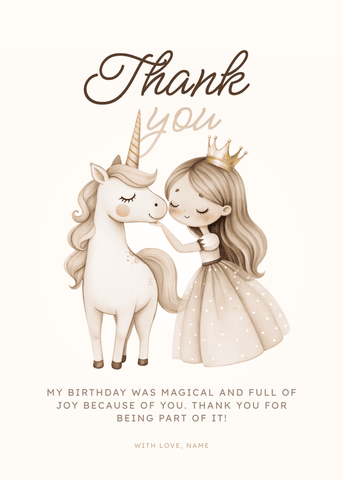 Celebrate with a playful princess unicorn-themed invitation that sparkles with whimsy and wonder. Ideal for children who love unicorns, princesses, and fairy tales. Customize in Canva and send a digital invitation that makes the day feel extra special.