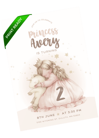 Celebrate with a exciting sleeping princess-themed invitation that feels like a royal celebration. Perfect for birthday kids obsessed with princesses, unicorns, and bedtime stories. Easily customize in Canva and instantly send a digital invite that makes them feel like royalty.