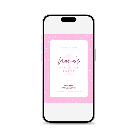 Sleek, modern small confetti classic 1st - 5th birthday invitation template. Clean design meets contemporary style in this Canva-ready template. Perfect for parents who love minimalist aesthetics with maximum impact.