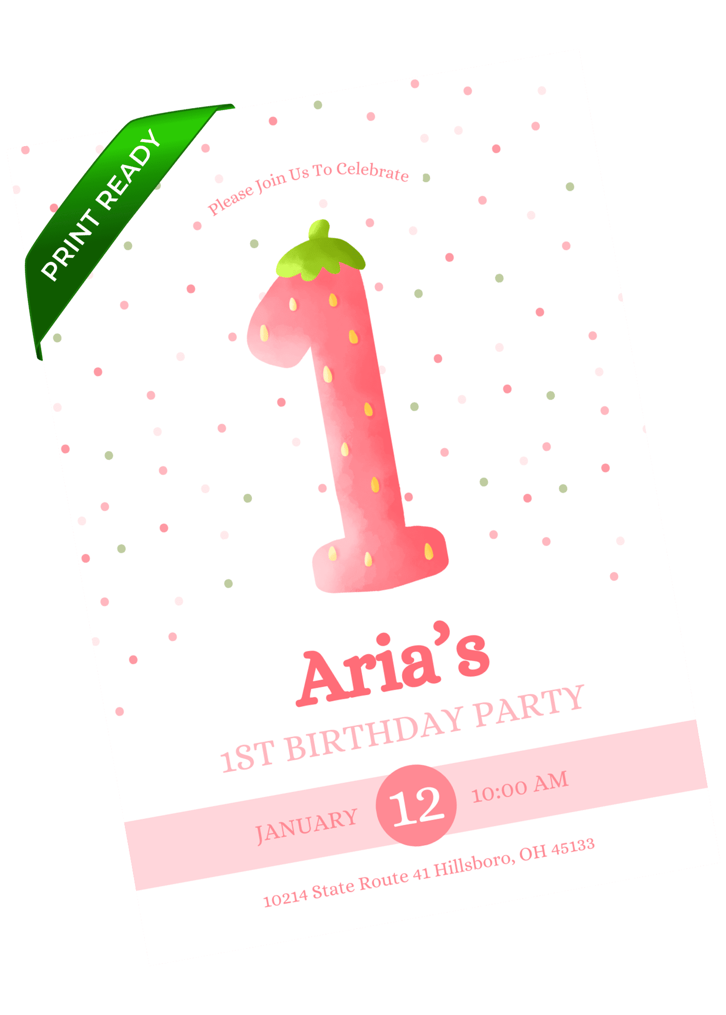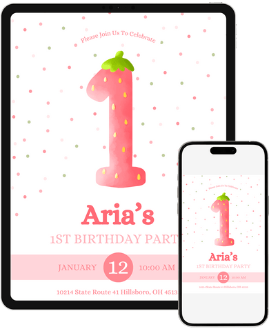 Fresh, cheerful, and full of sweetness. This strawberry numbers birthday invitation is a lovely choice for a bright and uplifting celebration. Soft pink accents pair with a bold strawberry number for a fun and modern look. Edit in Canva and share a delightful invitation that feels warm and inviting.