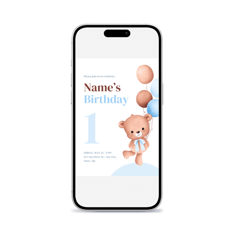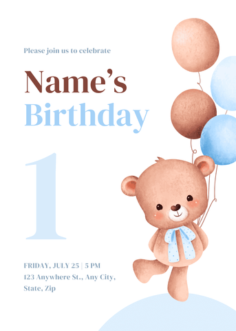 Sleek, modern animal, balloons theme 1st - 5th birthday invitation template. Clean design meets contemporary style in this Canva-ready template. Perfect for parents who love minimalist aesthetics with maximum impact.