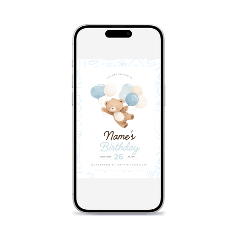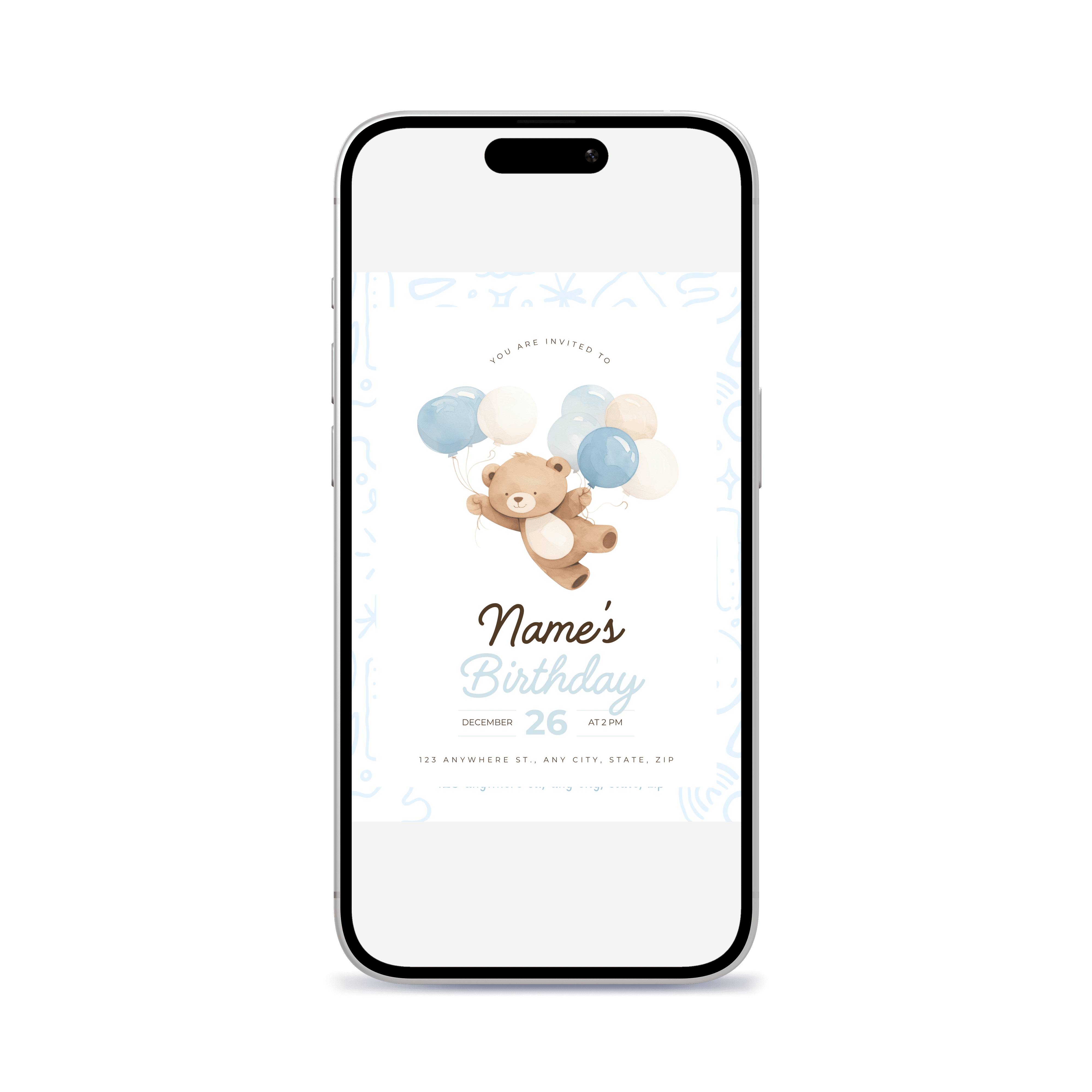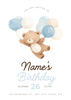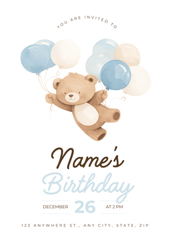Sleek, modern animal, balloons theme 1st birthday invitation template. Clean design meets contemporary style in this Canva-ready template. Perfect for parents who love minimalist aesthetics with maximum impact.