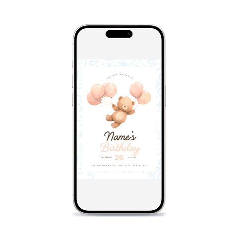Sleek, modern animal, balloons theme 1st birthday invitation template. Clean design meets contemporary style in this Canva-ready template. Perfect for parents who love minimalist aesthetics with maximum impact.
