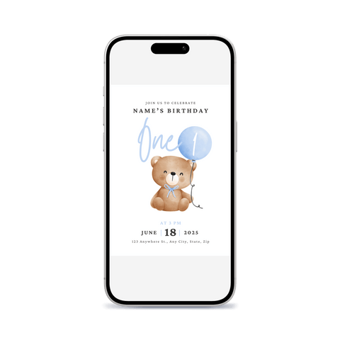 Sleek, modern animal, balloons theme 1st - 5th birthday invitation template. Clean design meets contemporary style in this Canva-ready template. Perfect for parents who love minimalist aesthetics with maximum impact.