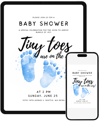 Celebrate the little one on the way with this warm and whimsical Tiny Toes invitation. Soft beige watercolor footprints make it perfect for a gender-neutral shower. Customize the details in Canva in minutes and send instantly - no printing needed.