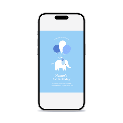 Sleek, modern animal, balloons theme 1st - 5th birthday invitation template. Clean design meets contemporary style in this Canva-ready template. Perfect for parents who love minimalist aesthetics with maximum impact.
