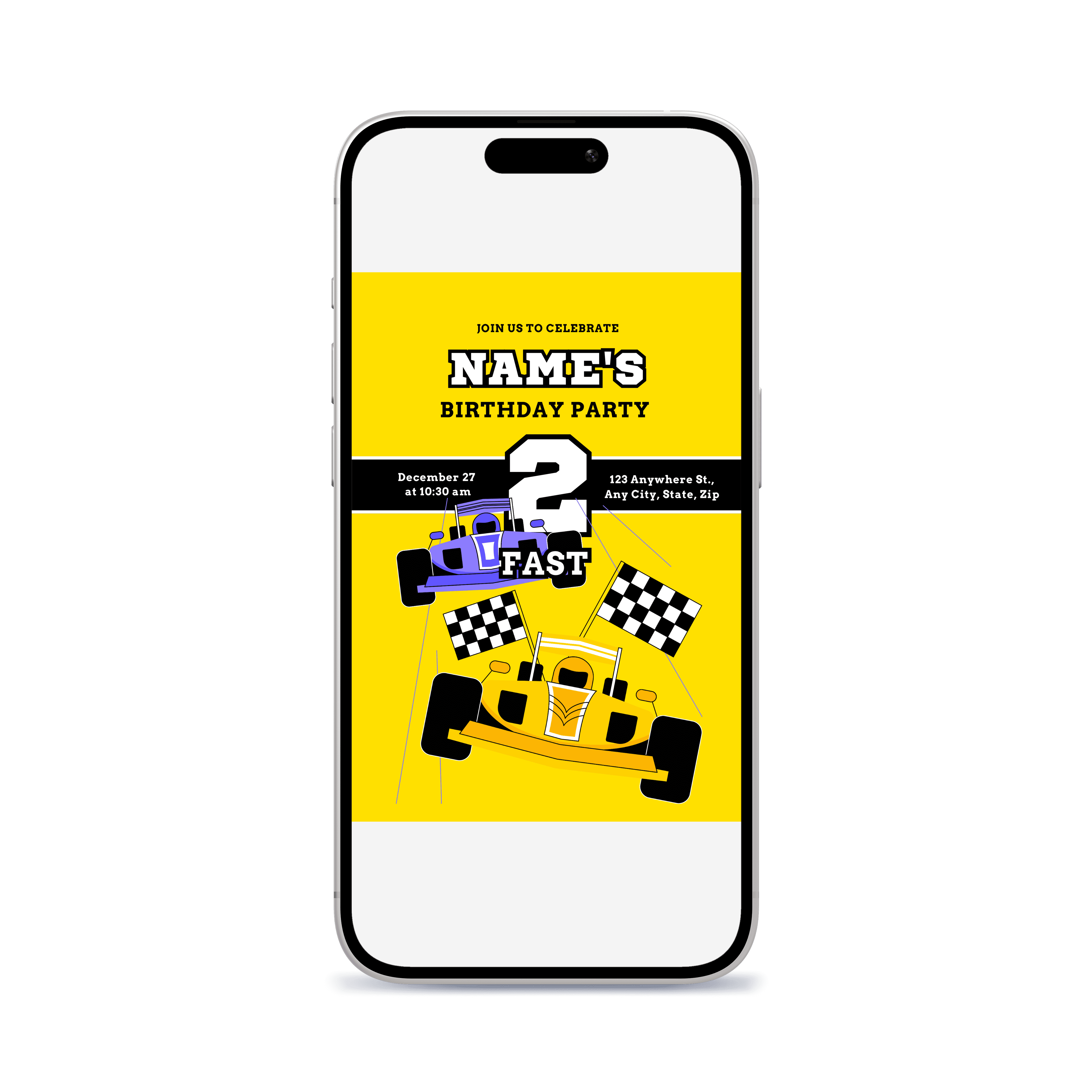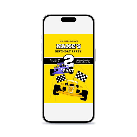Sleek, modern two fast theme 2nd birthday invitation template. Clean design meets contemporary style in this Canva-ready template. Perfect for parents who love minimalist aesthetics with maximum impact.