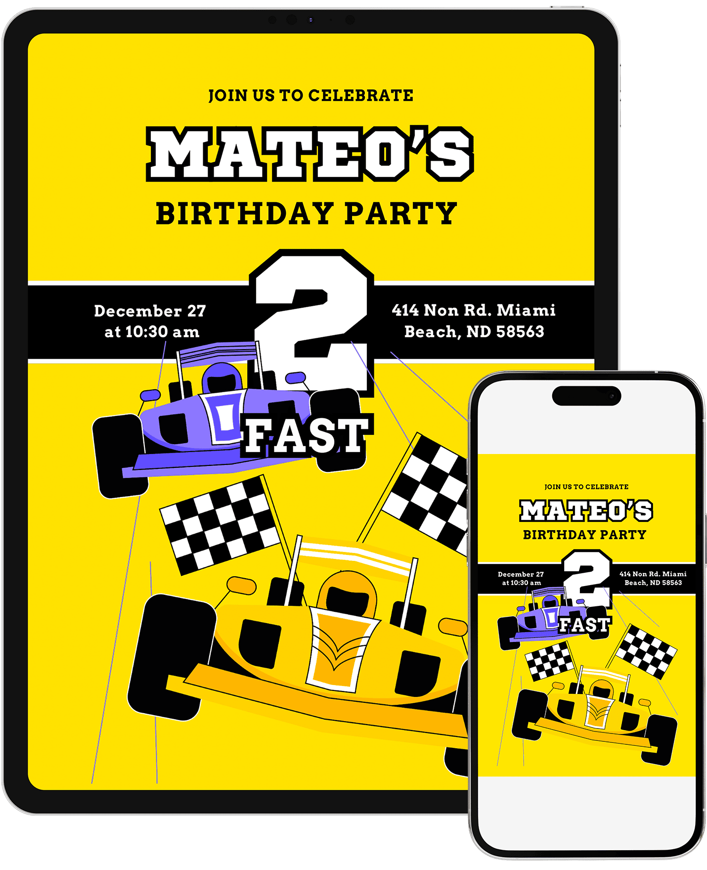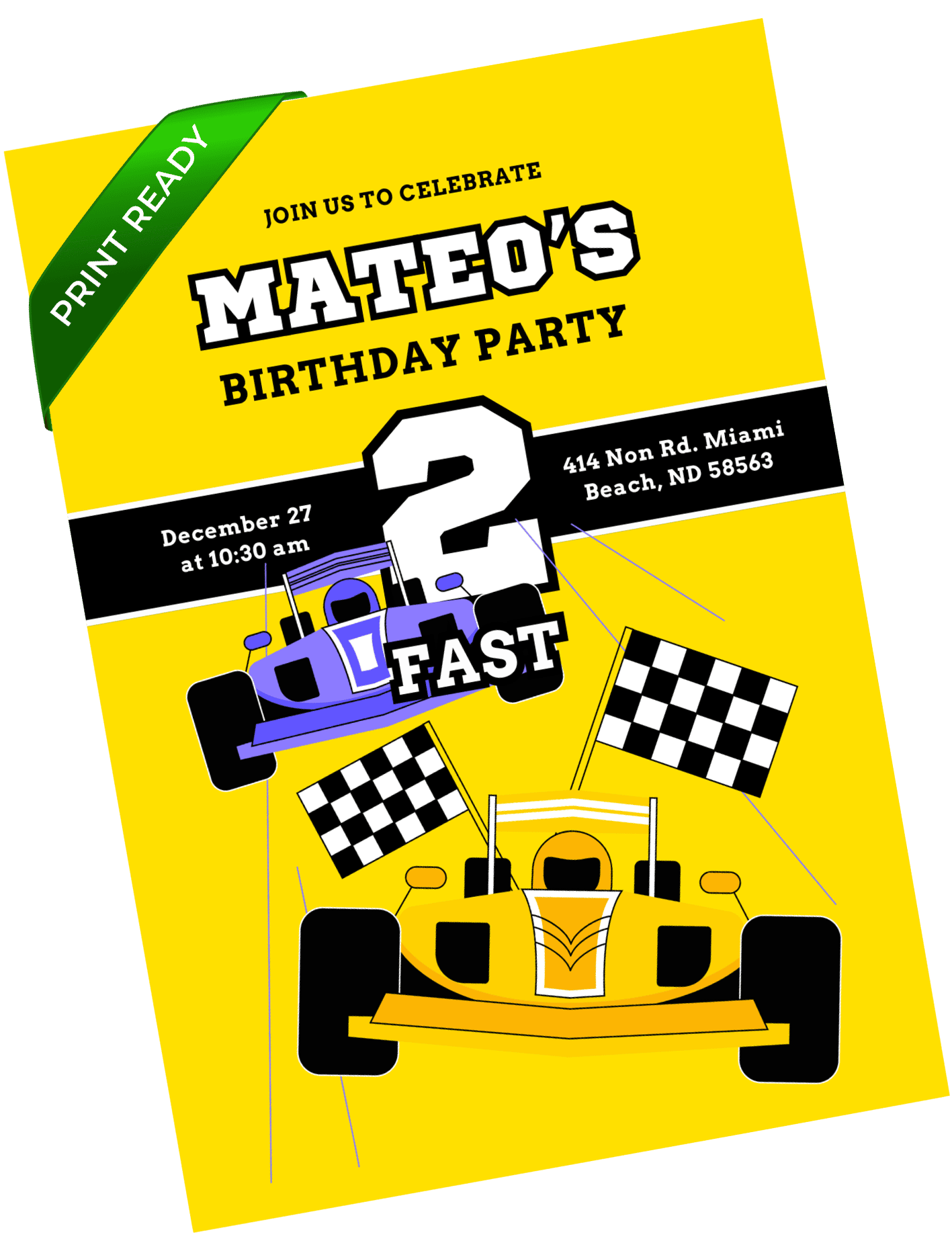 Ready for full-throttle fun. This racing birthday invitation was created with little speed fans in mind. Vibrant colors, race cars, and checkered accents bring an exciting energy to the design. Personalize in Canva and kick off the celebration with an invite that feels bold and action packed.