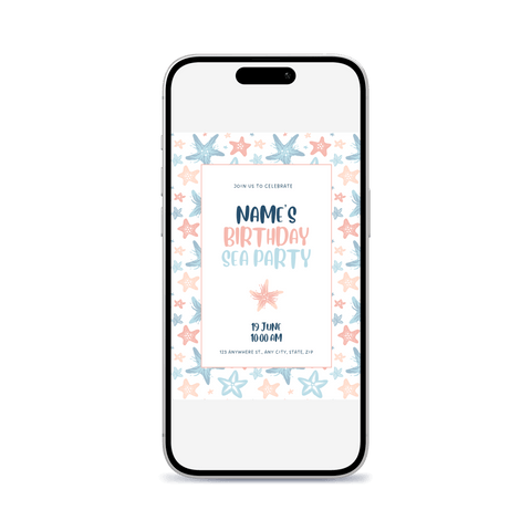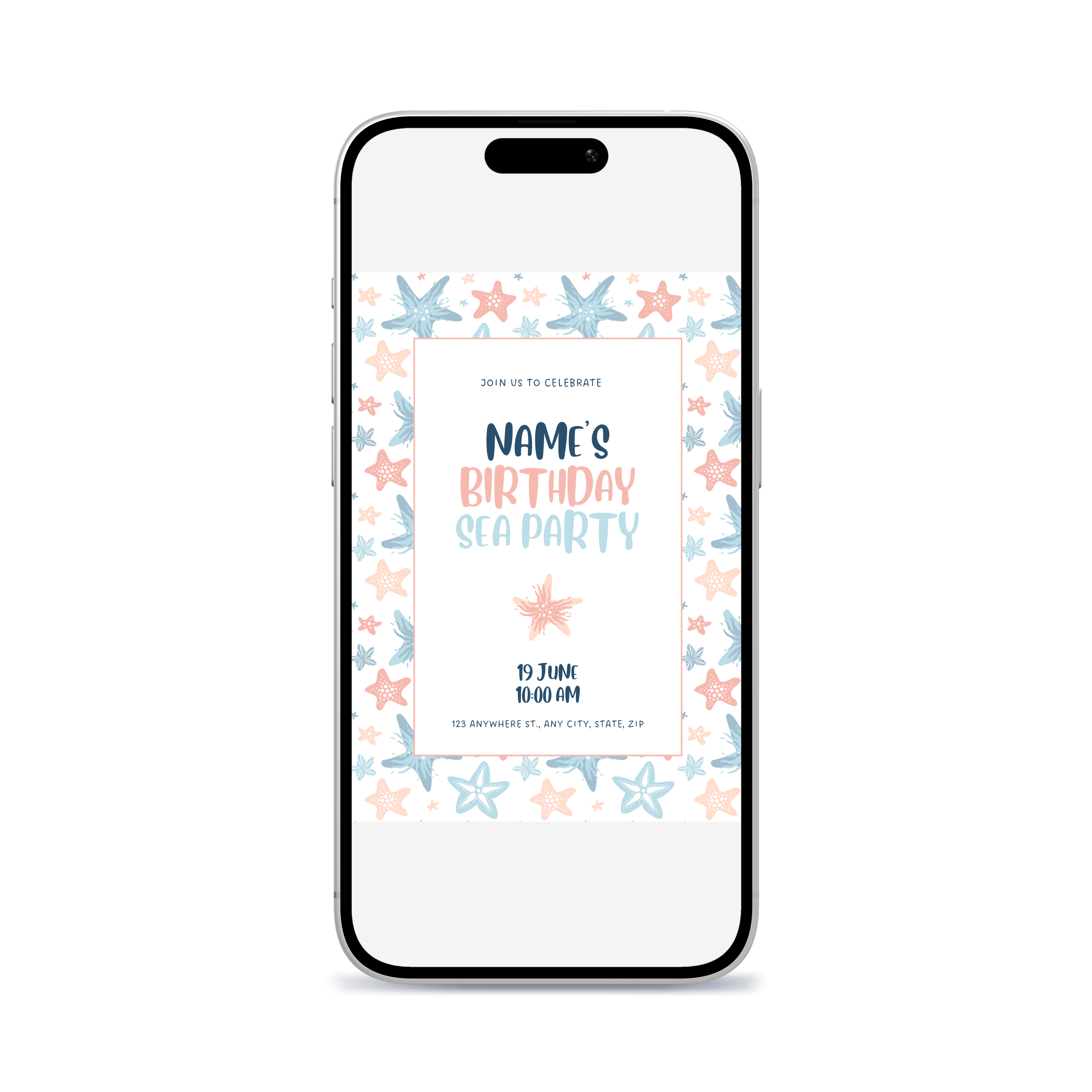 Sleek, modern under the sea theme 1st birthday invitation template. Clean design meets contemporary style in this Canva-ready template. Perfect for parents who love minimalist aesthetics with maximum impact.
