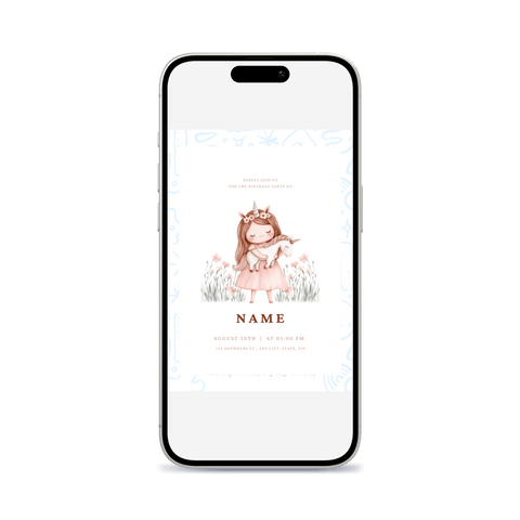 Sleek, modern unicorn theme 2nd birthday invitation template. Clean design meets contemporary style in this Canva-ready template. Perfect for parents who love minimalist aesthetics with maximum impact.