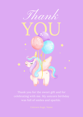 A bright and playful unicorn invitation with floating balloons, cheerful purples, and a fun celebratory feel. Ideal for kids who love colorful, energetic designs. Personalize in Canva and share an invite that feels joyful from the first glance.