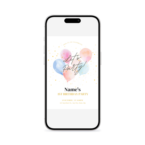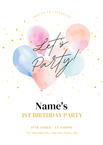 Sleek, modern balloons classic 1st - 5th birthday invitation template. Clean design meets contemporary style in this Canva-ready template. Perfect for parents who love minimalist aesthetics with maximum impact.