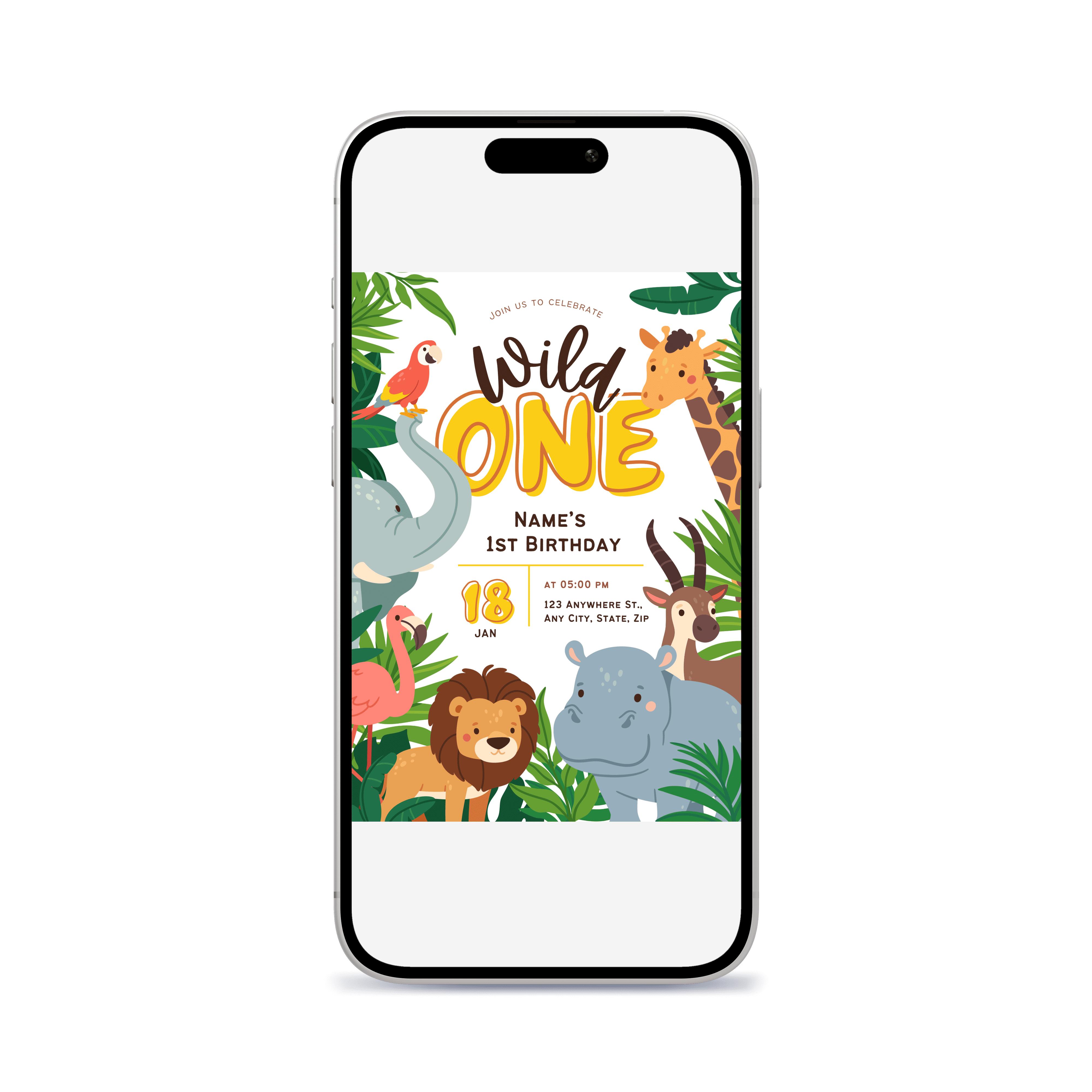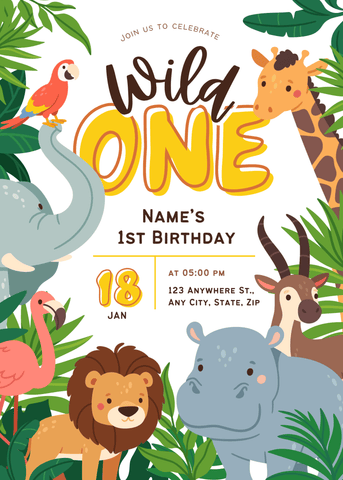 Wild One Birthday Invitation - Animals Tropics
